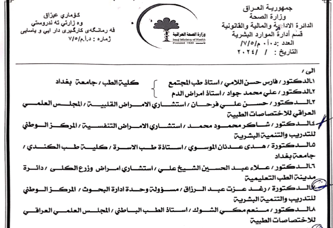 اقرأ المزيدحصل الاستاذ الدكتور منعم مكي الشوك على كتاب شكر وتقدير من وزارة الصحة.العراقية وذلك لجهوده القيمة والمتميزة في اللجنة المركزية العلمية للبحوث واللجنة…